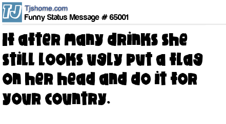 - # 65017 If after many drinks, and she still looks ugly, put a flag on her head and do it for your country.