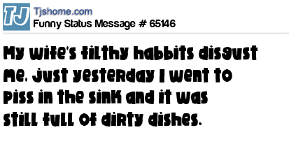 X is My wife's filthy habbits disgust me, just yesterday I went to piss in the sink and it was still full of dirty dishes.