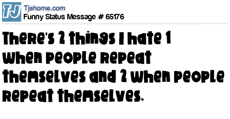 X is There's 2 things I hate 1 when people repeat themselves and 2 when people repeat themselves.