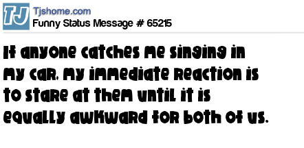 - # 81162 If anyone happens to catch me singing in my car, my immediate reaction is to stare at them back unblinking and still singing, until it is equally awkward for both of us.