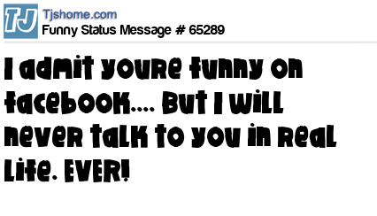 X is I admit youre funny on facebook.... But I will never talk to you in real life. EVER!