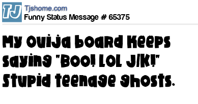 X says My Ouija board keeps saying "Boo! LOL J/K!" Stupid teenage ghosts.