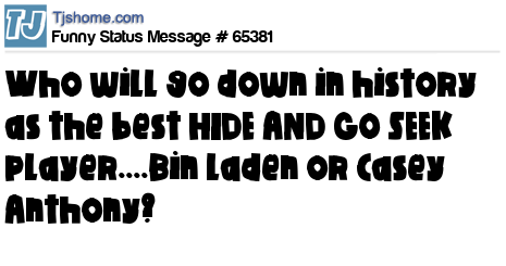 X says Who will go down in history as the best HIDE AND GO SEEK player....Bin Laden or Casey Anthony?