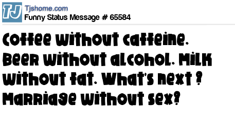 X says Coffee without caffeine. Beer without alcohol. Milk without fat. What's next ? Marriage without sex?