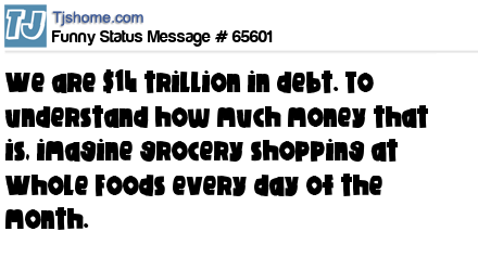 X We are $14 trillion in debt. To understand how much money that is, imagine grocery shopping at Whole Foods every day of the month.