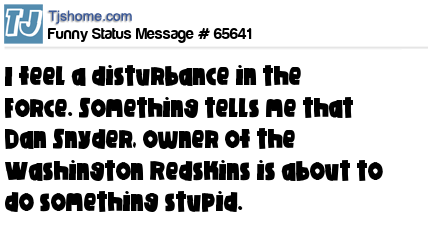 X says I feel a disturbance in the Force. Something tells me that Dan Snyder, owner of the Washington Redskins is about to do something stupid.