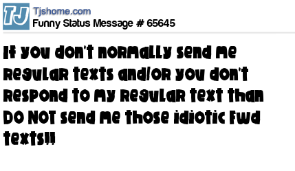 X says If you don't normally send me regular texts and/or you don't respond to my regular text than DO NOT send me those idiotic Fwd texts!!