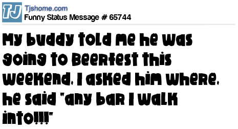 X is my buddy told me he was going to Beerfest this weekend, I asked him where, he said "any bar I walk into!!!"