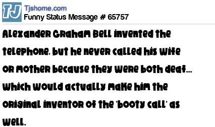 X  Alexander Graham Bell invented the telephone, but he never called his wife or mother because they were both deaf... which would actually make him the original inventor of the 'booty call' as well.
