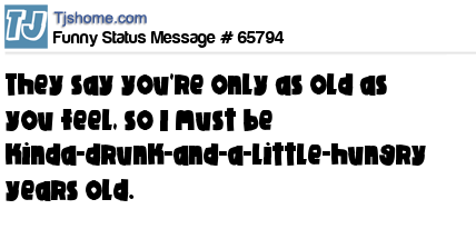 X They say you're only as old as you feel, so I must be kinda-drunk-and-a-little-hungry years old.