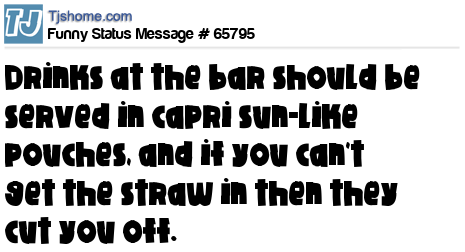 X Drinks at the bar should be served in capri sun-like pouches, and if you can't get the straw in then they cut you off.
