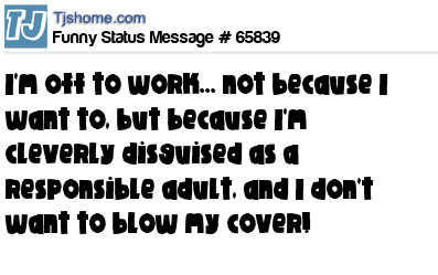 X I'm off to work... not because I want to, but because I'm cleverly disguised as a responsible adult, and I don't want to blow my cover!