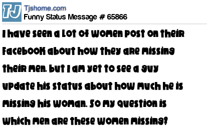 X says I have seen a lot of women post on their Facebook about how they are missing their men, but I am yet to see a guy update his status about how much he is missing his woman. So my question is which men are these women missing?