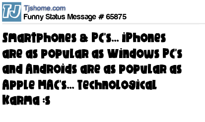 X  Smartphones & PC's... iPhones are as popular as Windows PC's and Androids are as popular as Apple MAC's... Technological Karma :s