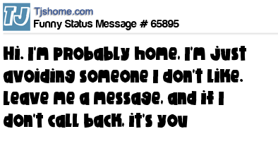 X says Hi. I'm probably home, I'm just avoiding someone I don't like. Leave me a message, and if I don't call back, it's you