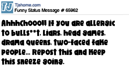 X says AhhhChooo!! If you are allergic to bulls**t, liars, head games, drama queens, two-faced fake people... Repost this and keep this sneeze going.