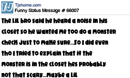 - # 89261 I told the monster in my closet that coming out of there would make him gay. Ha!!,,That solves that problem.
