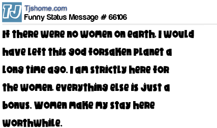 X says If there were no women on earth, I would have left this god forsaken planet a long time ago. I am strictly here for the women, everything else is just a bonus. Women make my stay here worthwhile.