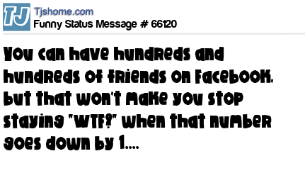 - # 87302 I can have hundreds and hundreds of friends on facebook, but that won't stop me from saying "WTF!?" when that number goes down by one...