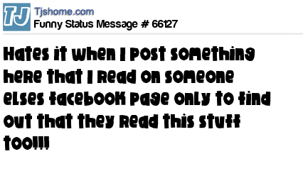 X is hates it when I post something here that I read on someone elses facebook page only to find out that they read this stuff too!!!