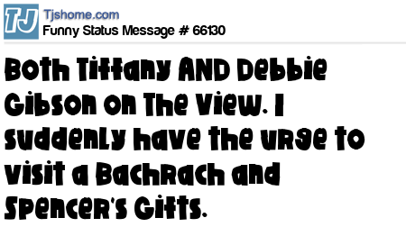 X Both Tiffany AND Debbie Gibson on The View. I suddenly have the urge to visit a Bachrach and Spencer's Gifts.