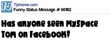 - # 42666 You know times are tough when you receive a friend request on facebook from Tom Anderson (MySpace). I guess he is one of the 47% that got fired from MySpace!