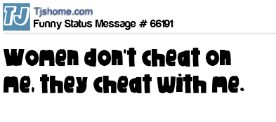 - # 92936 Women cheat on men more often when they're ovulating. Men cheat on women more often when they're drunkulating.