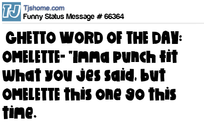 X is GHETTO WORD OF THE DAY: OMELETTE- "Imma punch fit what you jes said, but OMELETTE this one go this time.