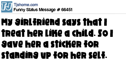 X says My girlfriend says that I treat her like a child. So I gave her a sticker for standing up for her self.