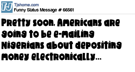 X says pretty soon, Americans are going to be e-mailing Nigerians about depositing money electronically...