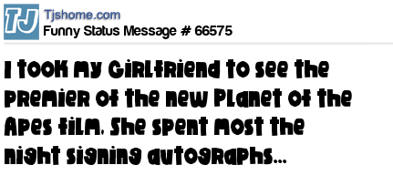 X says I took my Girlfriend to see the premier of the new Planet of the Apes film, She spent most the night signing autographs...