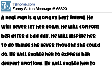 - # 114796 A real man is a woman's best friend. He'll never let her down. He'll comfort her after a bad day. He'll inspire her to do things she never thought she could.He'll enable her to express her deepest emotions.He'll enable her to be confident $