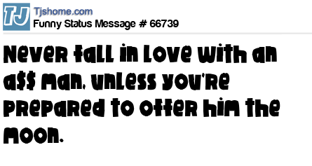 X  Never fall in love with an a$$ man, unless you're prepared to offer him the moon.