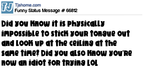 X says Did you know it is physically impossible to stick your tongue out and look up at the ceiling at the same time? Did you also know you're now an idiot for trying LOL