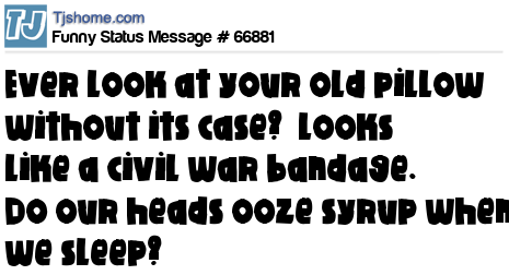 X says ever look at your old pillow without its case? Looks like a civil war bandage. Do our heads ooze syrup when we sleep?