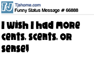 X says I wish I had more cents, scents, or sense!