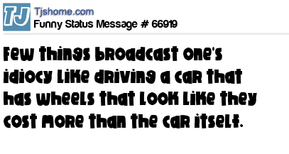 - # 66932 Few things broadcast one's idiocy like driving a car that has wheels that look like they cost more than the car itself