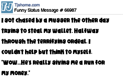 X is I got chased by a mugger the other day trying to steal my wallet. Halfway through the terrifying ordeal, I couldn't help but think to myself, "Wow...He's really giving me a run for my money."