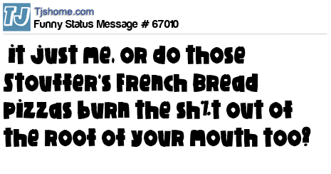 X is it just me, or do those Stouffer's French Bread pizzas burn the sh%t out of the roof of your mouth too?