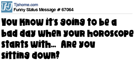- # 46770 You know it's going to be a bad day when your horoscope starts with... "Are you sitting down?"