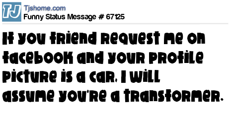 - # 71281 If you sendme a friend request on FB, and your profile pic is of a vehicle of some sort, I'm going to assume that you're a Transformer.