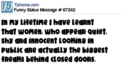 X says In my lifetime I have learnt that women, who appear quiet, shy and innocent looking in public are actually the biggest freaks behind closed doors.