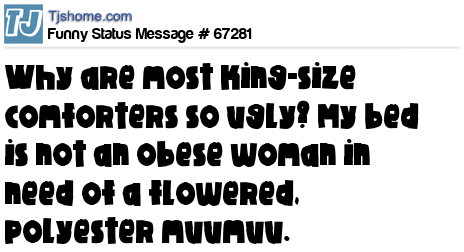X  why are most king-size comforters so ugly? My bed is not an obese woman in need of a flowered, polyester muumuu.