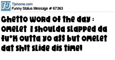 X says Ghetto word of the day : Omelet I shoulda slapped da fu*k outta yo a$$ but omelet dat sh!t slide dis time!