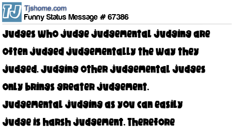 X is Judges who judge judgemental judging are often judged judgementally the way they judged. Judging other judgemental judges only brings greater judgement. Judgemental judging as you can easily judge is harsh judgement. Therefore Judge not lest ye be judged!