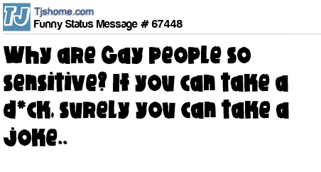 X says Why are Gay people so sensitive? If you can take a d*ck, surely you can take a joke..