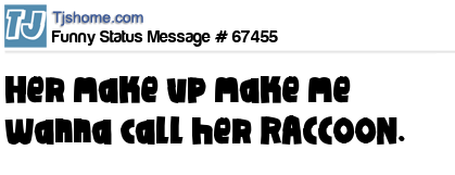 - # 195163 RACCOON: I'm being burglarized 911: can you describe him RACCOON: he's wearing a mask 911: maybe he's your RACCOON: nevermind, it’s my husband