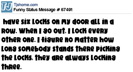 - # 4926 I have six locks on my door all in a row. When I go out, I lock every other one. I figure no matter how long somebody stands there picking the locks, they are always locking three.