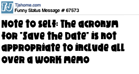 X is Note to self: The acronym for "Save the Date" is not appropriate to include all over a work memo