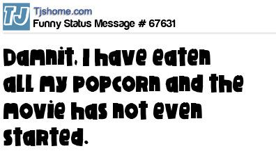X says Damnit, I have eaten all my popcorn and the movie has not even started.